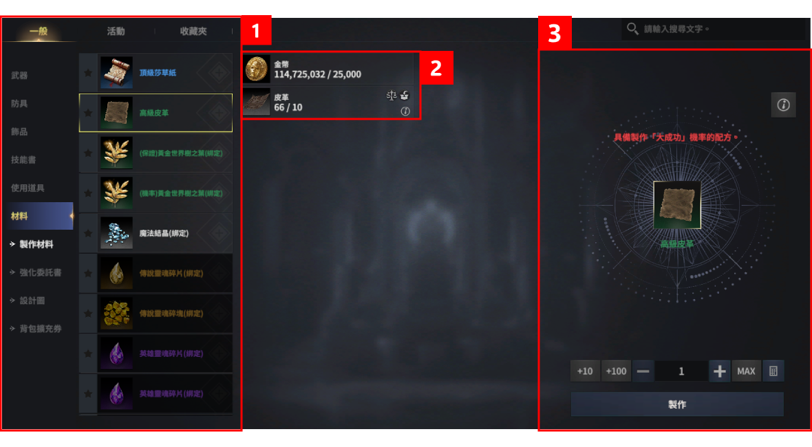 製作是透過收集各種材料,來製作裝備道具、強化材料、技能書等多種物品的系統。
