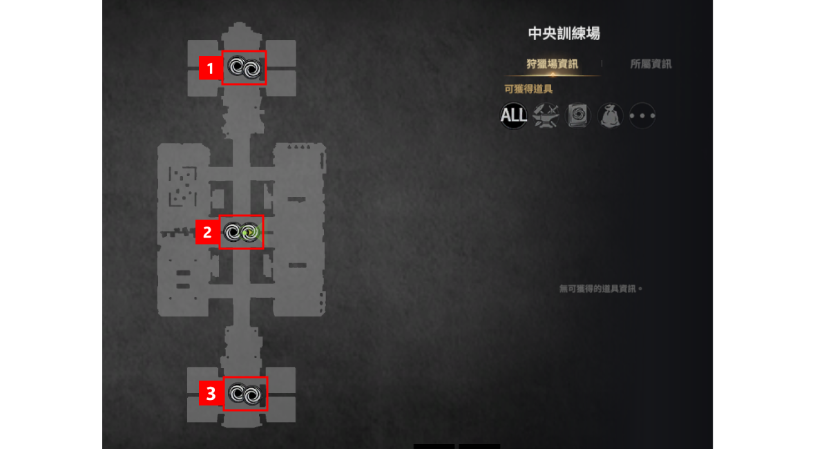 NPC 分別配置於訓練場北邊壁壘、中央訓練場與訓練場南邊壁壘。