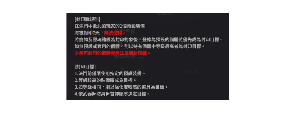 落敗者將依設定的封印目標,被封印部分功能。