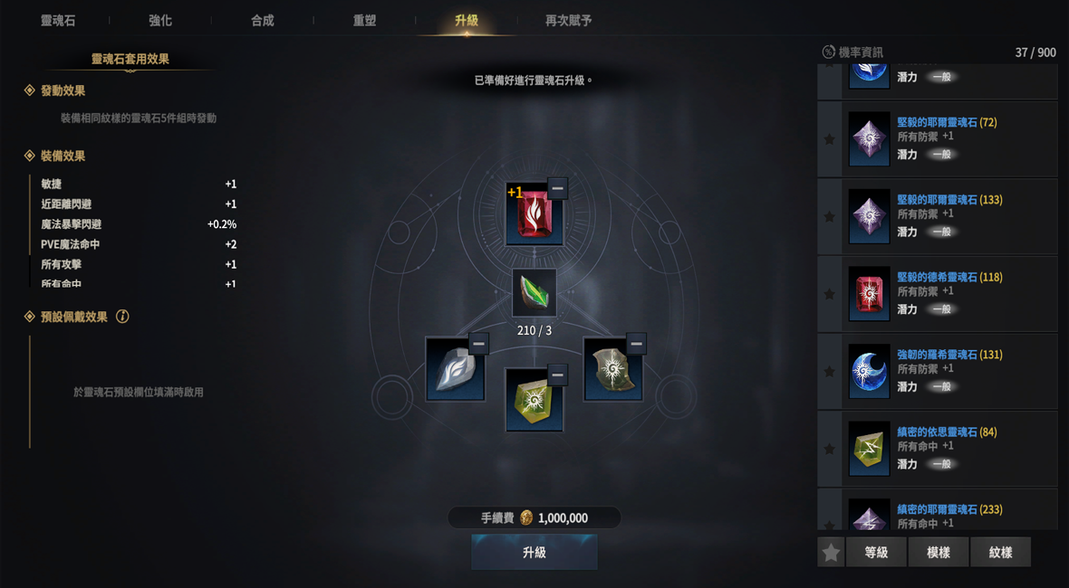 升級成功時,將在保留原有能力值的情況下提升靈魂石等級。